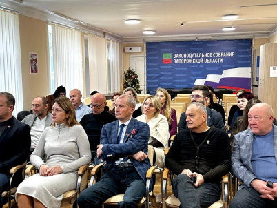 Виктор Емельяненко вместе с коллегами-депутатами Законодательного Собрания Запорожской области смотрит прямую линию с Президентом России Владимиром Путиным